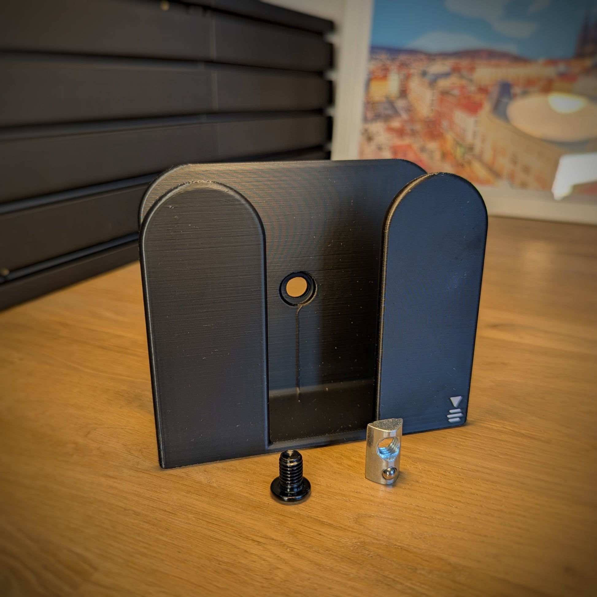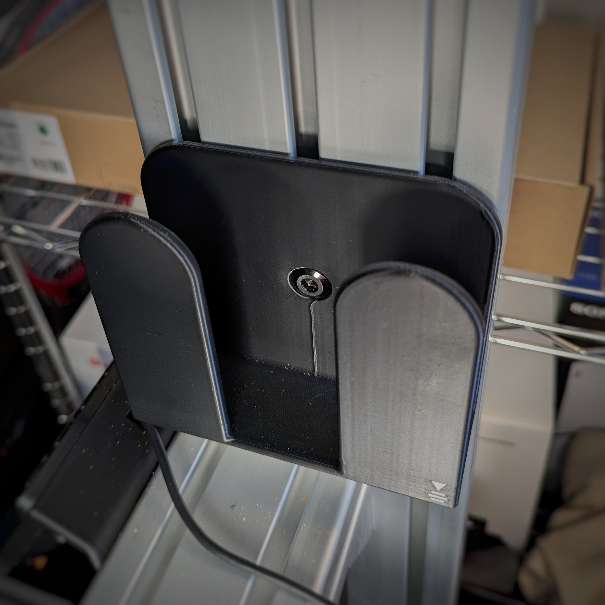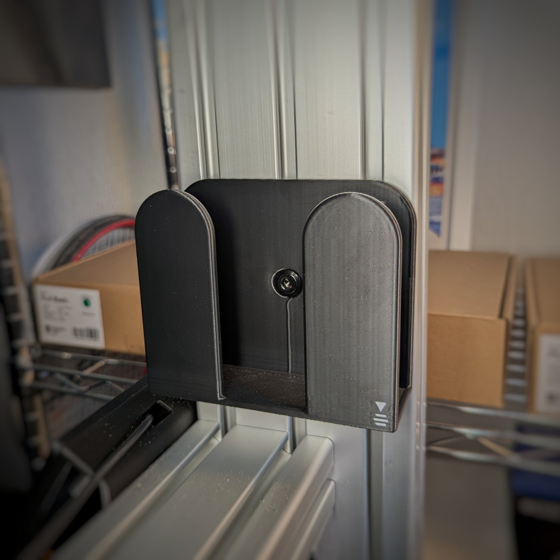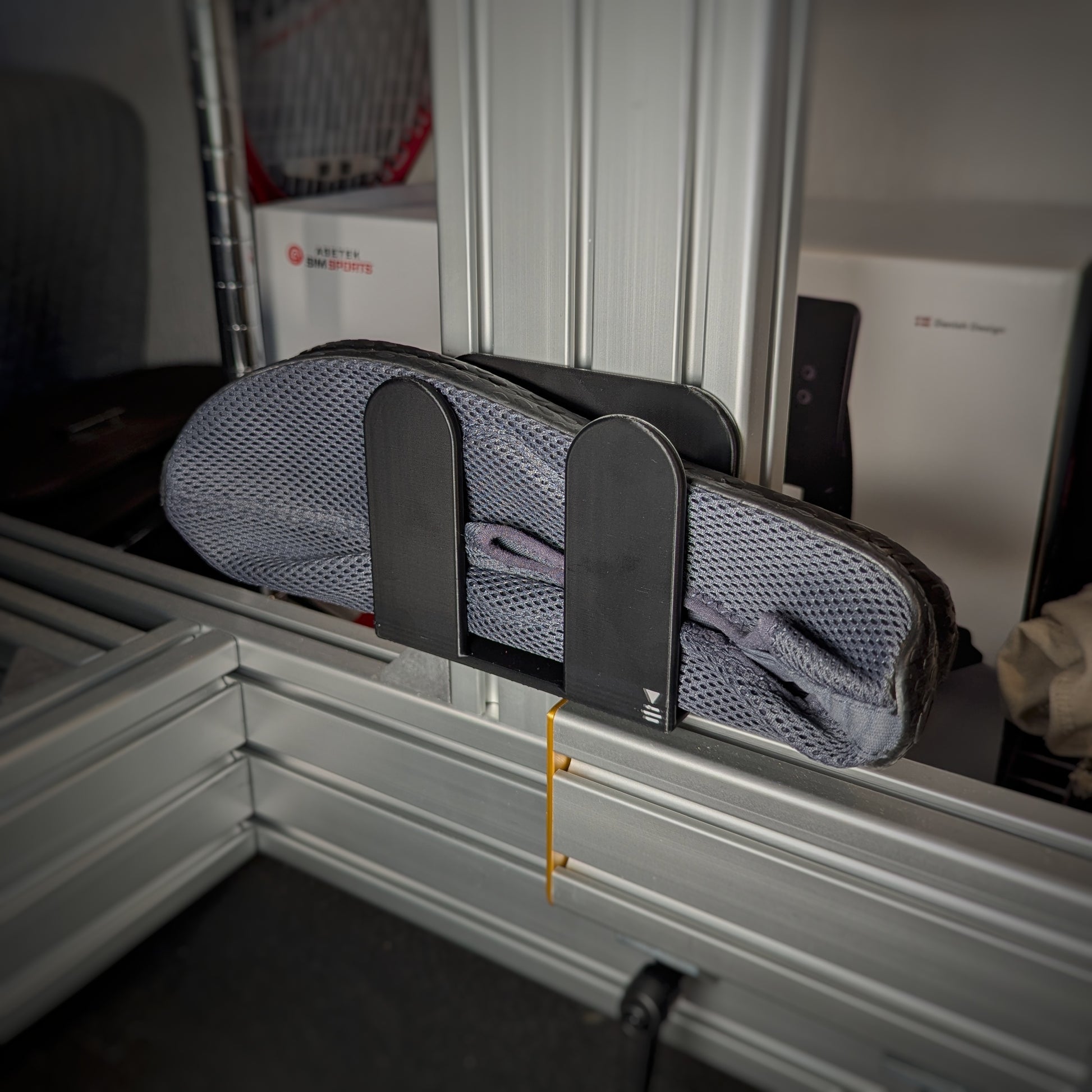 Questo supporto per guanti simracing è pensato per piloti virtuali che desiderano un cockpit pulito, organizzato e funzionale. Si fissa direttamente su un telaio in profilo di alluminio con scanalatura da 8 mm oppure sulla barra modulare XavLab.
